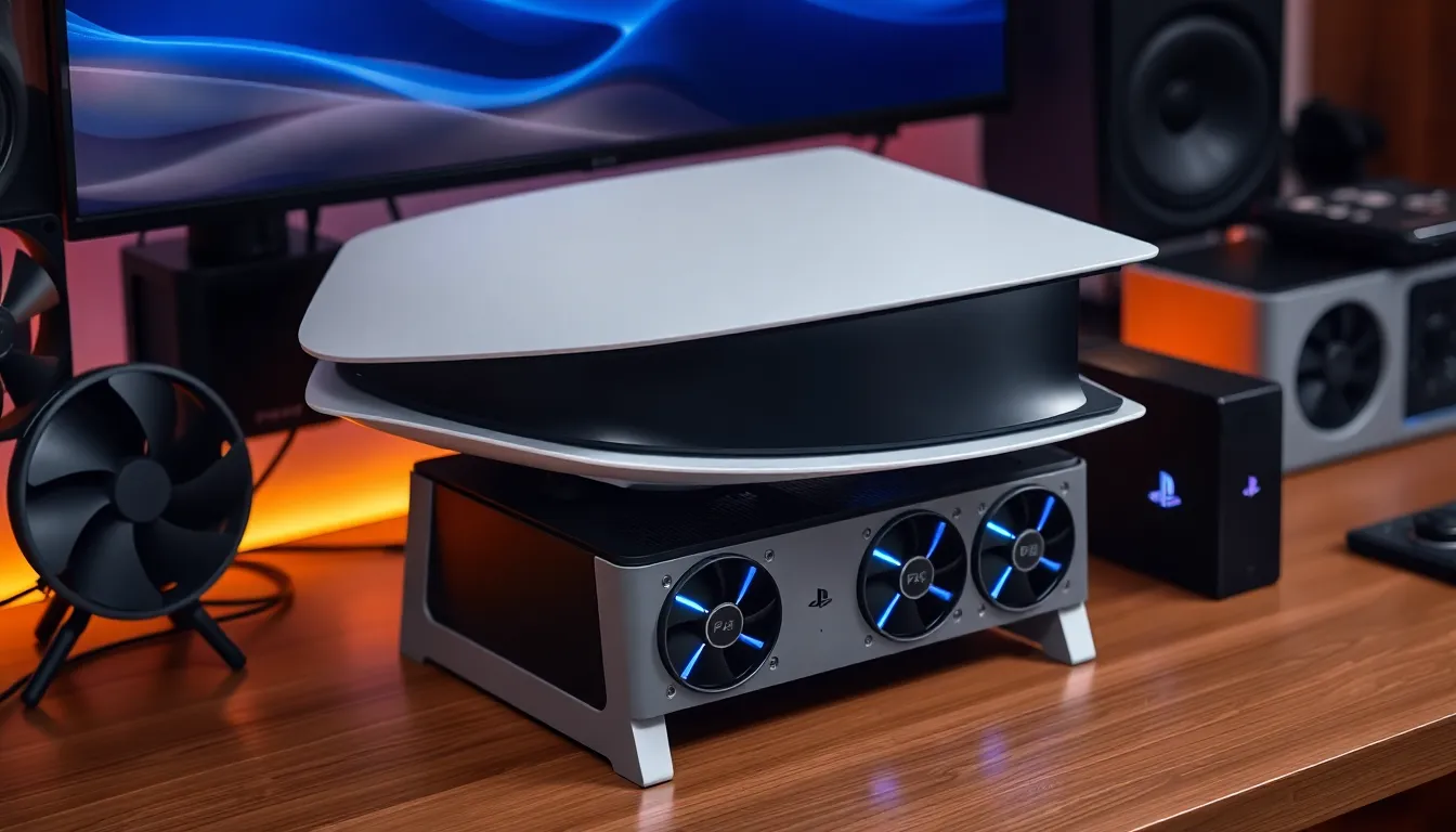 Third-party cooling stands elevate the PS5, promoting better airflow around the console. Many options feature built-in fans, providing additional cooling support. Adjustable fan speeds allow users to customize cooling levels based on their gaming needs. Popular brands include Akrin and Kootek, which offer efficient designs that integrate seamlessly with the console. Increased airflow helps reduce thermal throttling, ensuring optimal performance even during prolonged gameplay.